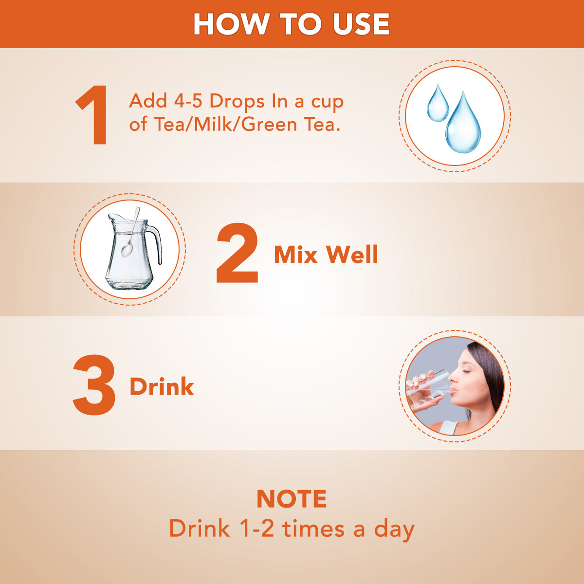 Step 1: Add 4-5 drops in a glass of water/beverage