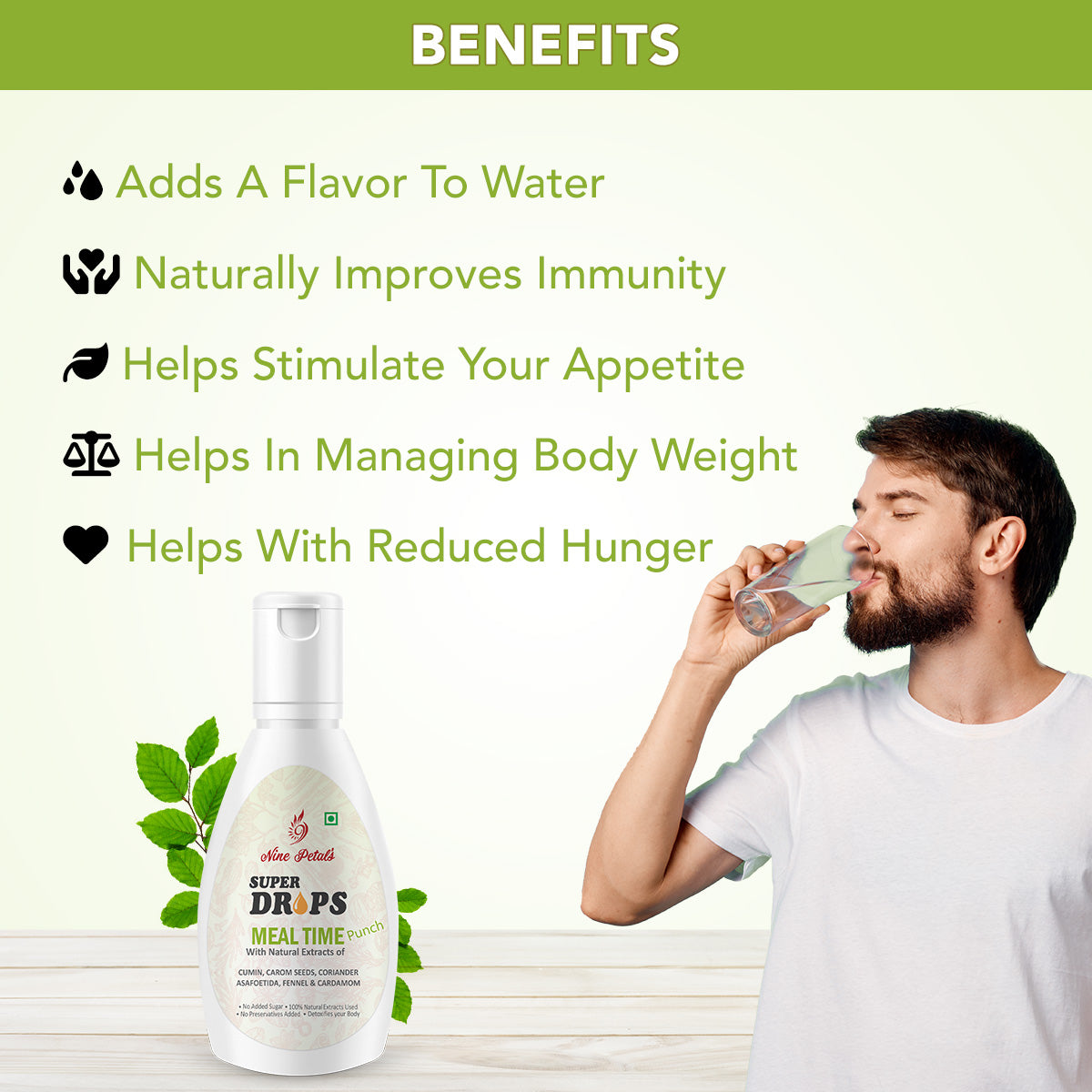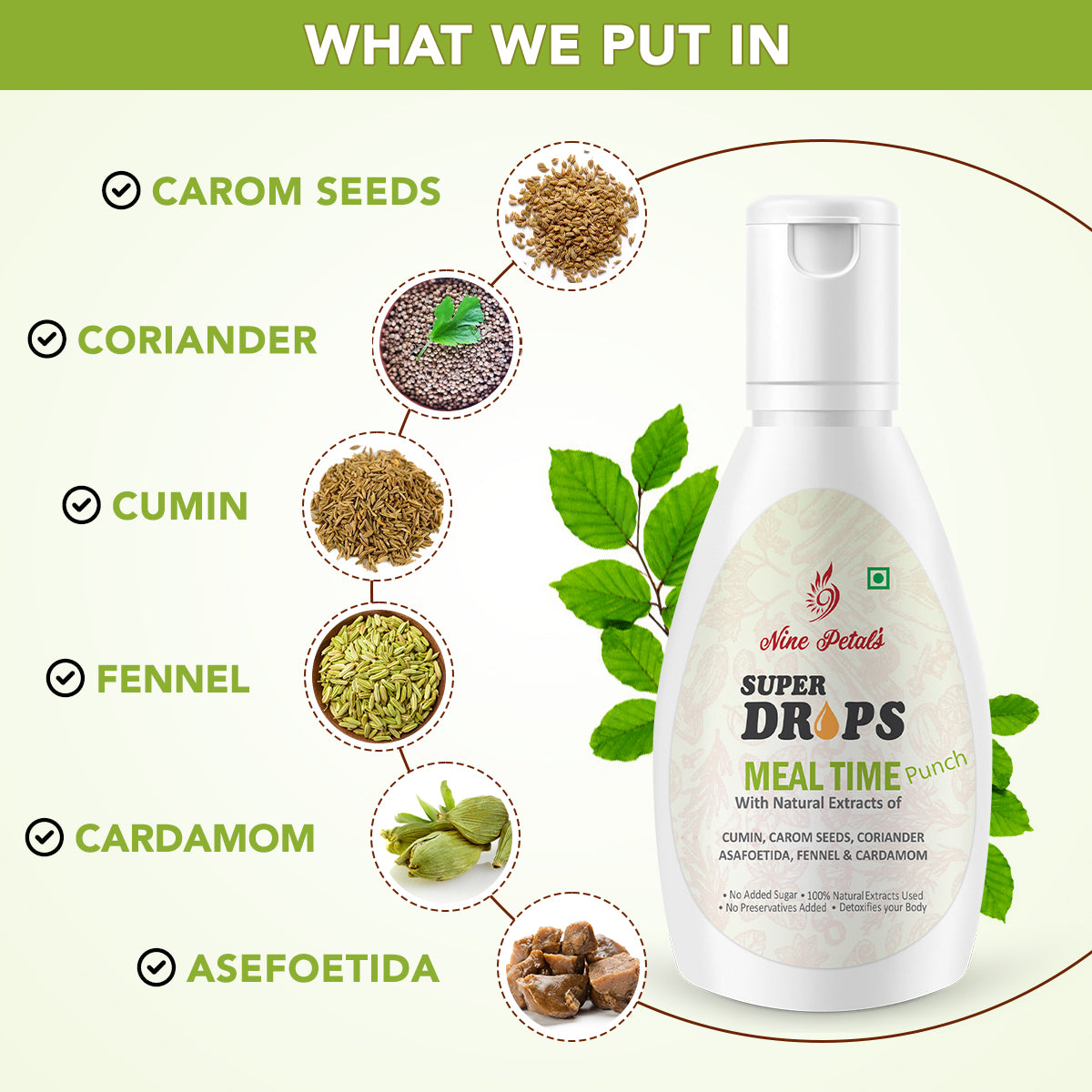 A good 4-6 drops in a glass of water can not only enhance the overall meal experience but can also make your gut stronger, healthier & cleaner, making your food intake better for the system.